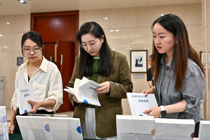 8月21日,與會(huì)者在北京舉行的“南海真相”系列智庫報(bào)告發(fā)布暨南海問題研討會(huì)現(xiàn)場(chǎng)翻閱“南海真相”系列智庫報(bào)告。新華社記者 李鑫 攝
