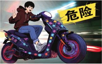 8月15日傍晚,北京四環路的輔路上,《法治日報》記者正駕車隨晚高峰車流前行,一輛貼滿熒光貼紙的電動自行車突然從車縫中斜穿而出。車把上掛著的LED燈條閃爍著紅藍色光芒,騎車的少年身體前傾,轉眼便消失在視線中。